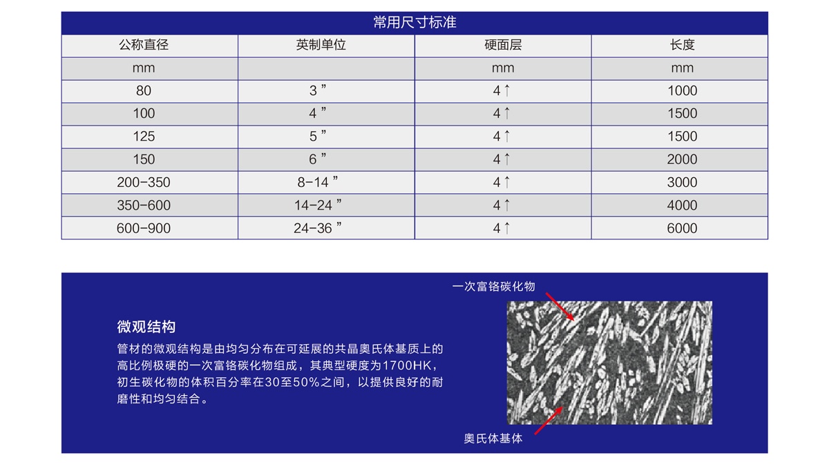 DUIH管材采用傳統(tǒng)的電弧焊工藝在低碳鋼基板上堆焊富含鉻的耐磨材料。表面硬化復合堆焊管材的設(shè)計具有極強的耐磨性能,適用于最惡劣的工礦環(huán)境。DUIH管材可提供雙道或多道復合堆焊產(chǎn)品。復合堆焊管材可以制作成方轉(zhuǎn)圓過渡段、彎頭、T形、Y形,或長彎頭等。